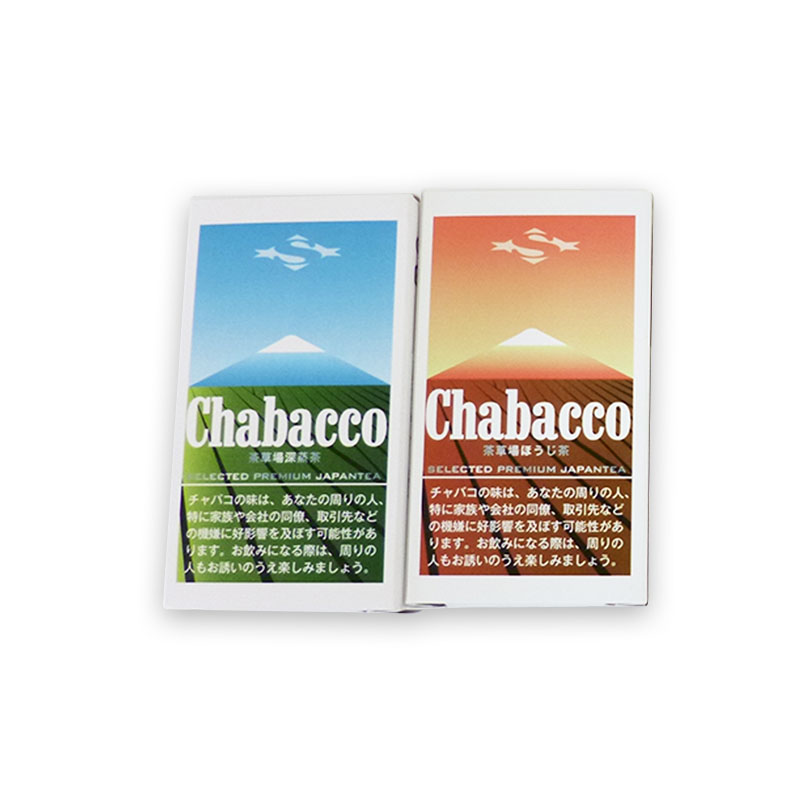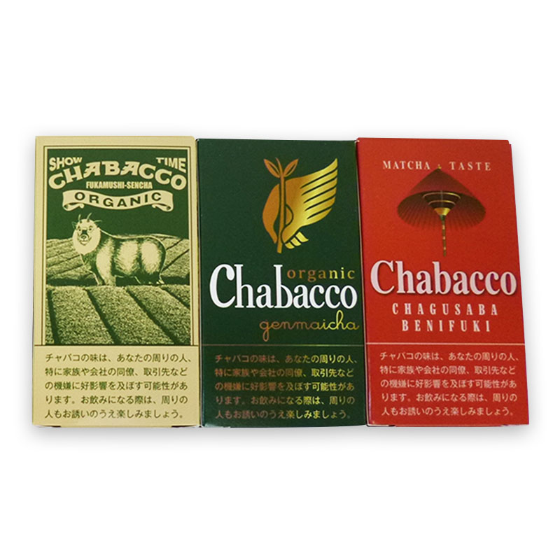 タバコ風の箱に入った、スティック粉末茶「チャバコ」。