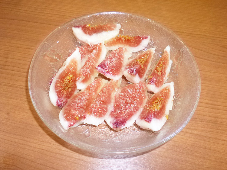 1クリームチーズを室温に戻しておく。いちじくの皮をむき6等分に切る。