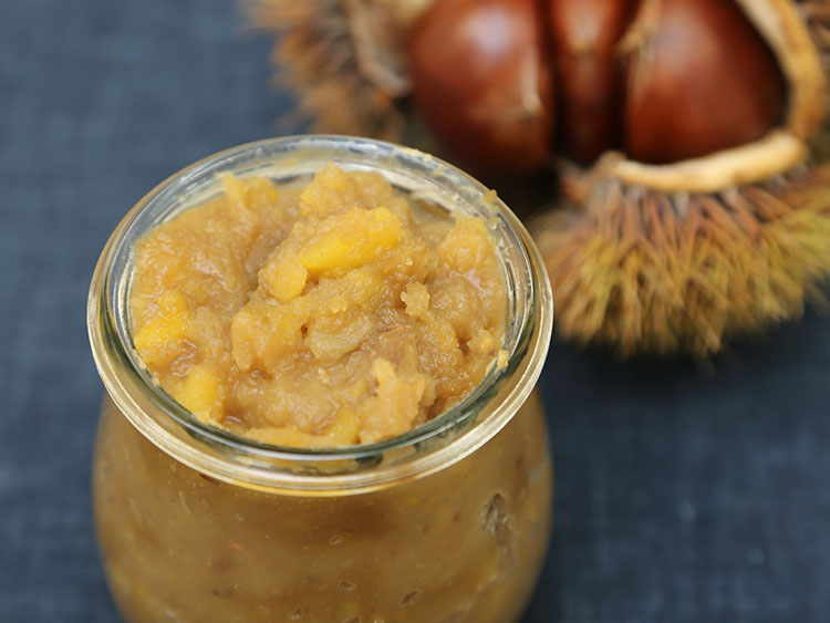 ★栗ジャムと栗のクリームは多めに作りました。残った栗のジャムとクリームはアイスクリームやホットケーキの上にのせてお召し上がりください。