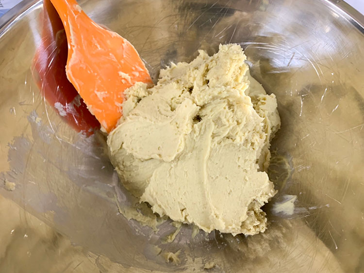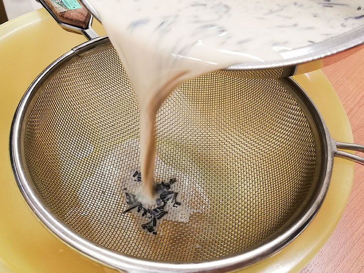 4ミキサーにかけてペースト状にしてからこす。固いときは生クリームを追加して調整。