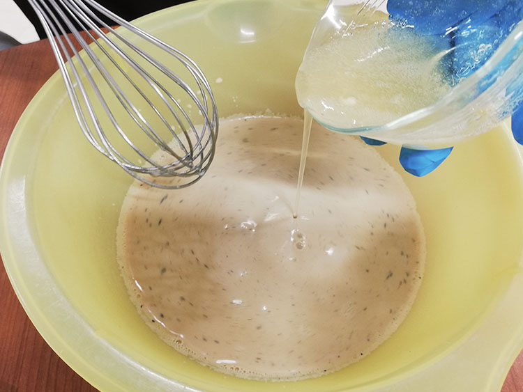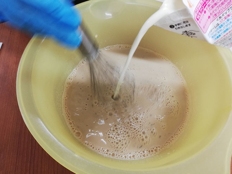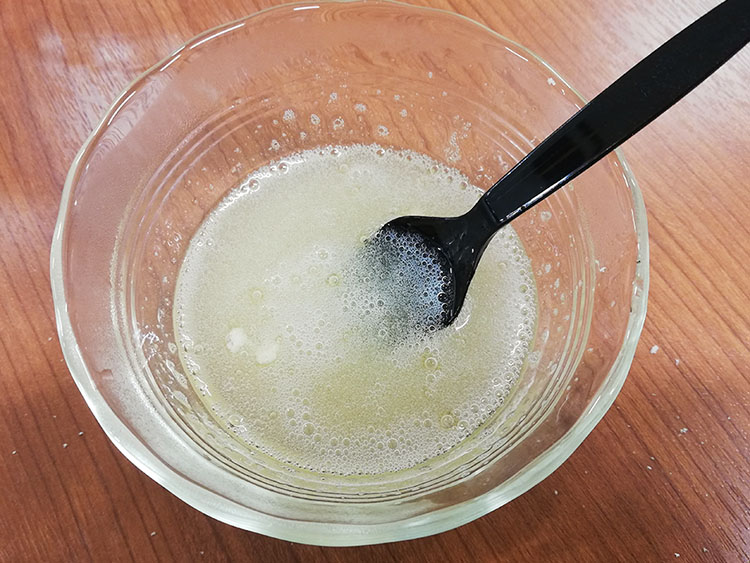 1ゼラチンと水を耐熱容器に入れ、ふやかす。