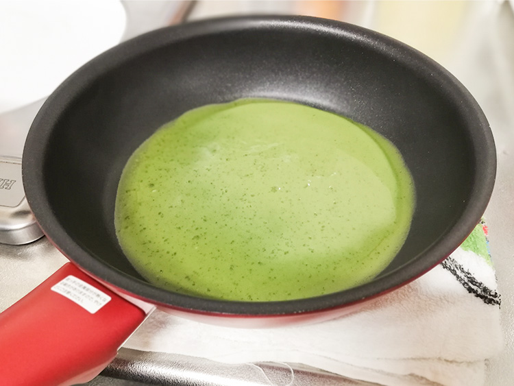 生地を焼く時、フライパンを回しながら生地を広げて焼くと綺麗に焼けます。