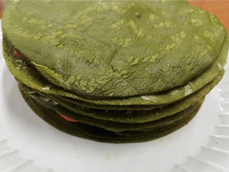 10焼きあがったクレープ生地を15cmのセルクルでくり抜く。