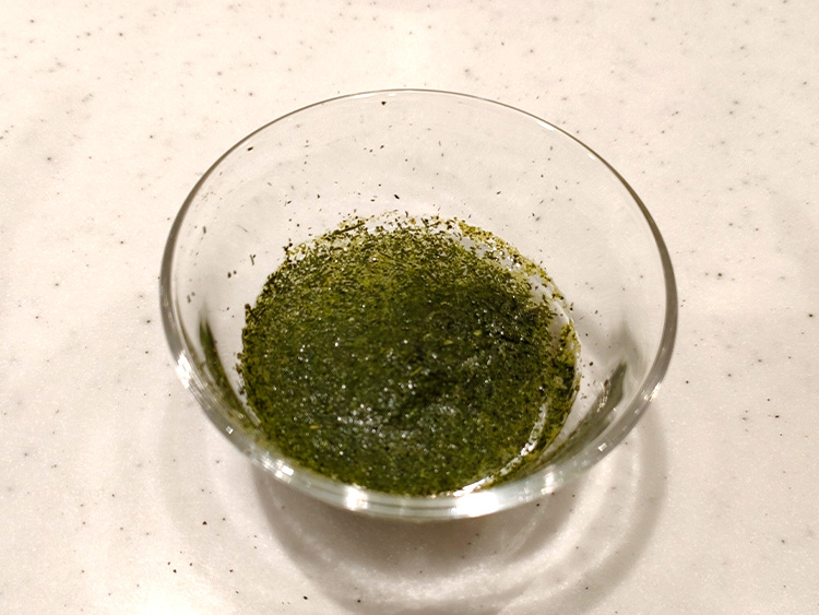 2①を耐熱容器に入れ、湯50ml加えてふやかす。