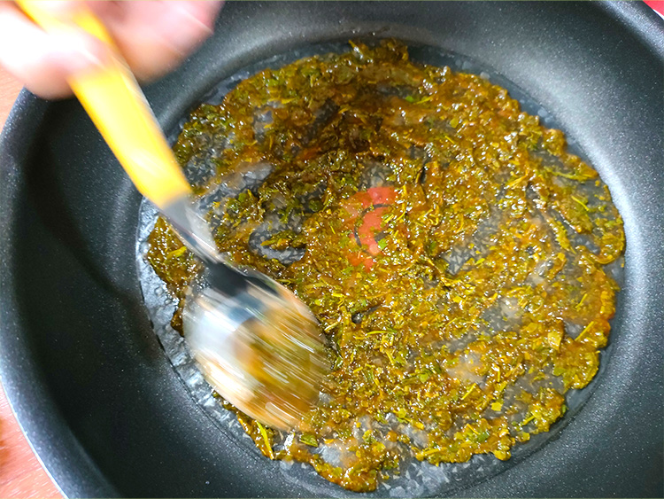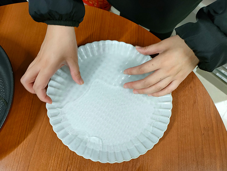 4茶殻とケチャップを混ぜ合わせ、ライスペーパーに塗ります。