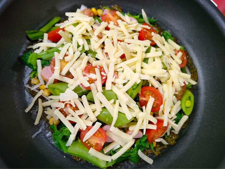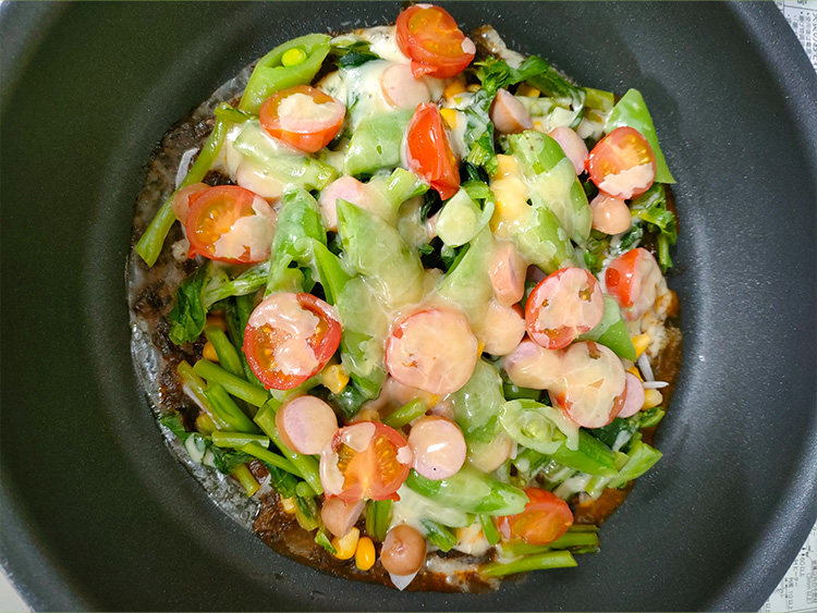 6ふたをして中火で4~5分(チーズが軽く溶ける程度)焼きます。
