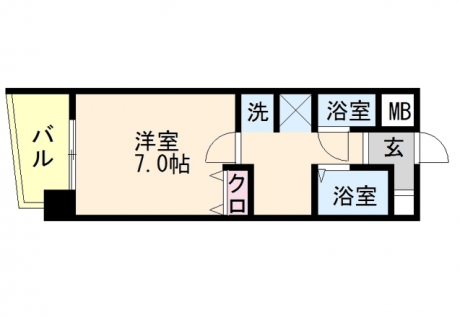 ①【階数】10F 【間取り】1K 【面積】23.26㎡ 【家賃】5万 【敷金/礼金】無料/1ヶ月