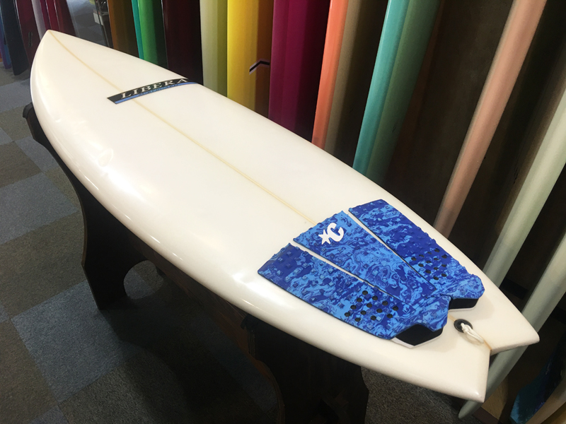 シェイプ、ラミネート、サンディング、リペアー全てをこなすクラフトマン921こと国井克博がクリエイトする、サーフボードブランドLIBERA。 スモール〜ミディアムウェーブ用モデルCFS。