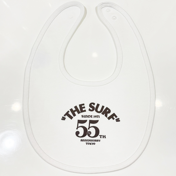 THE SURF 55周年アニバーサリーベビースタイが入荷しました。 10.0オンスの厚手なパイル生地はタフさや高い吸水性を持つ、赤ちゃんの必需品とも言えるスタイです。