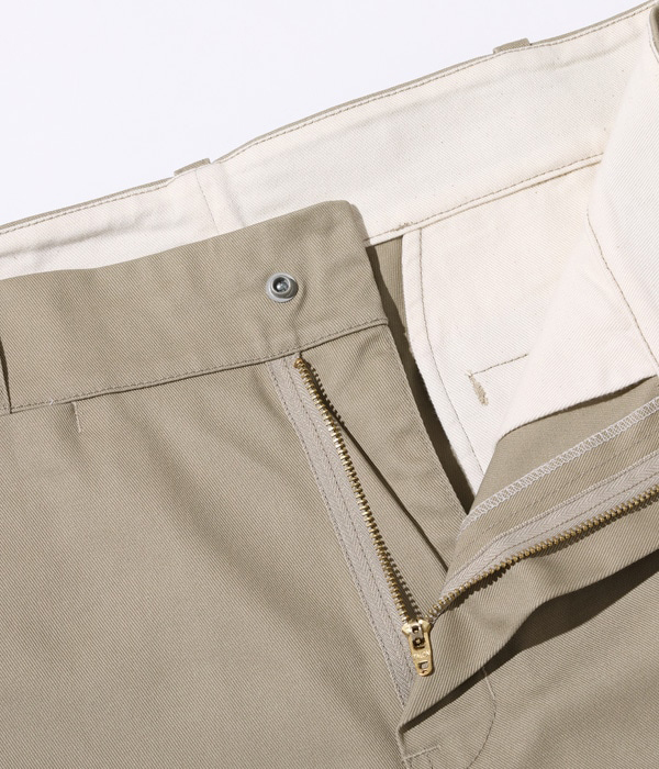 ポリエステル65%、コットン35%の混率で織り上げた頑丈なツイル生地を使用したワークトラウザース。