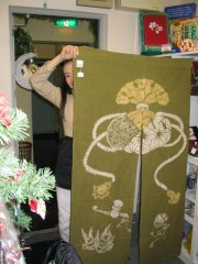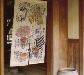 | 先染手織り麻のれん 狂言文様のれん(人間国宝 茂山千作) のれん刺繍サービス 無地のれん 寿三郎注染のれん |