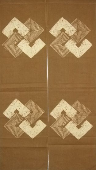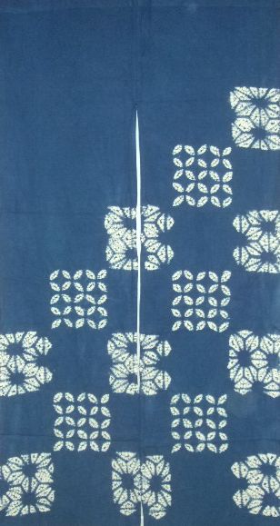 こちらも、人気の高い一枚です。シンプルな幾何学文様は、絞り風。間口の広いところに2枚並べても、邪魔にならない図柄です。
