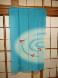 和柄プリントのれん【波紋金魚】(ミラー効果)
