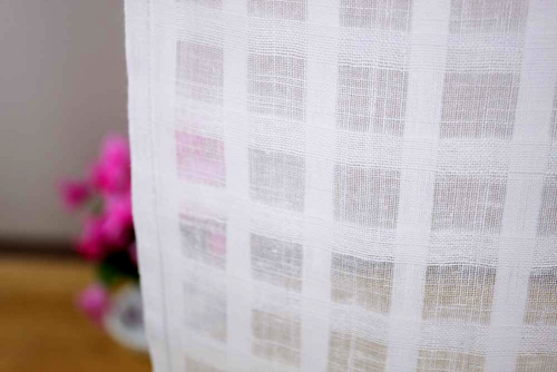 ミラーレースを使用。プリント生地にもうっすら市松柄をいれてあります。