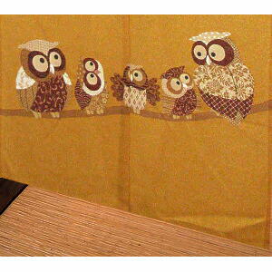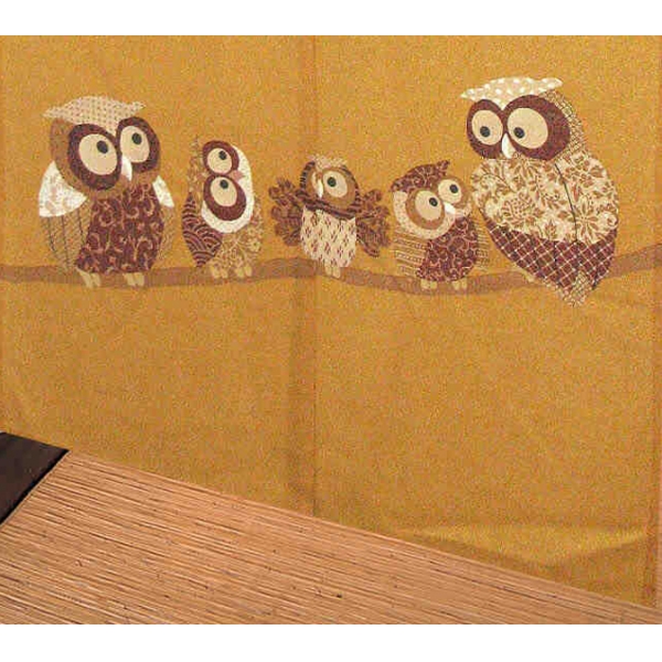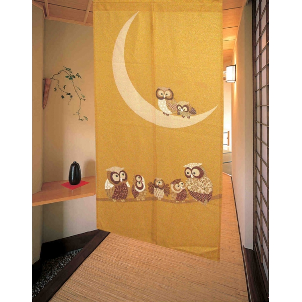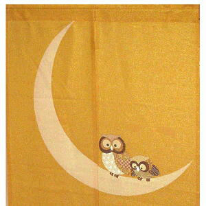 和柄プリントのれん【黄金月ふくろう】