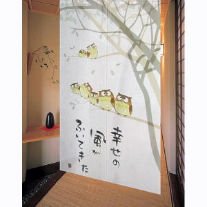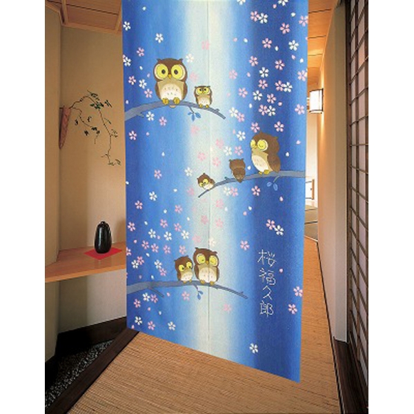 和柄プリントのれん【桜ふくろう】