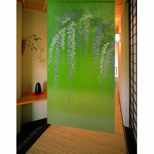 和柄プリントのれん【藤】