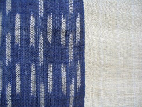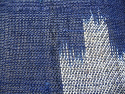 麻糸を染料で先に染め上げて、糸色の違いを利用して職人が織りによって図柄を表現いたしました。先染めは、日本では西陣織などが有名です。尚、使用している麻には、高級感のある大麻を100%使用し、重厚感のある独特の質感をだしています。