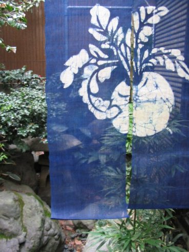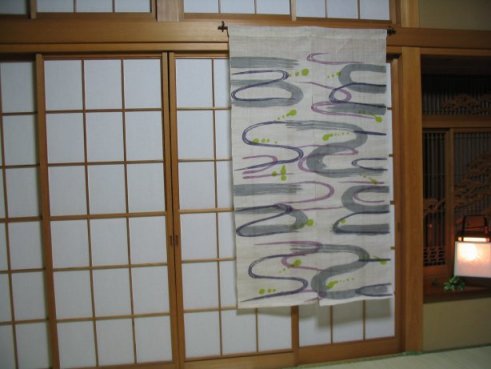 型染め手織り麻のれん流水