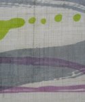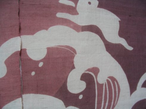 抜き染め手織り麻のれん荒波にうさぎ