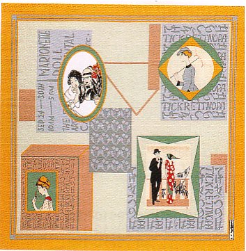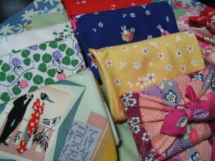 美人画をはじめ各種図案を生かし、大正ロマンあふれるふろしきチーフを染め上げました。