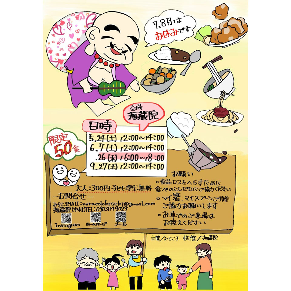 ◆「みんなの食堂 みらころ×海藏院」。令和7年9月の開催は27日の予定です。