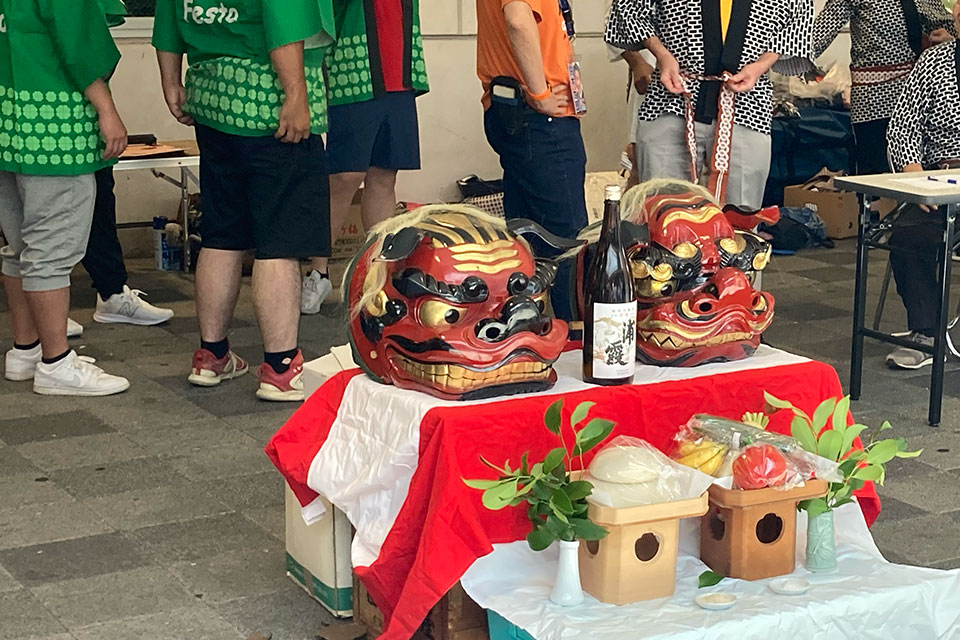 戸塚パルソ前・西口駐輪場。恒例の獅子頭が睨みを聴かせます。