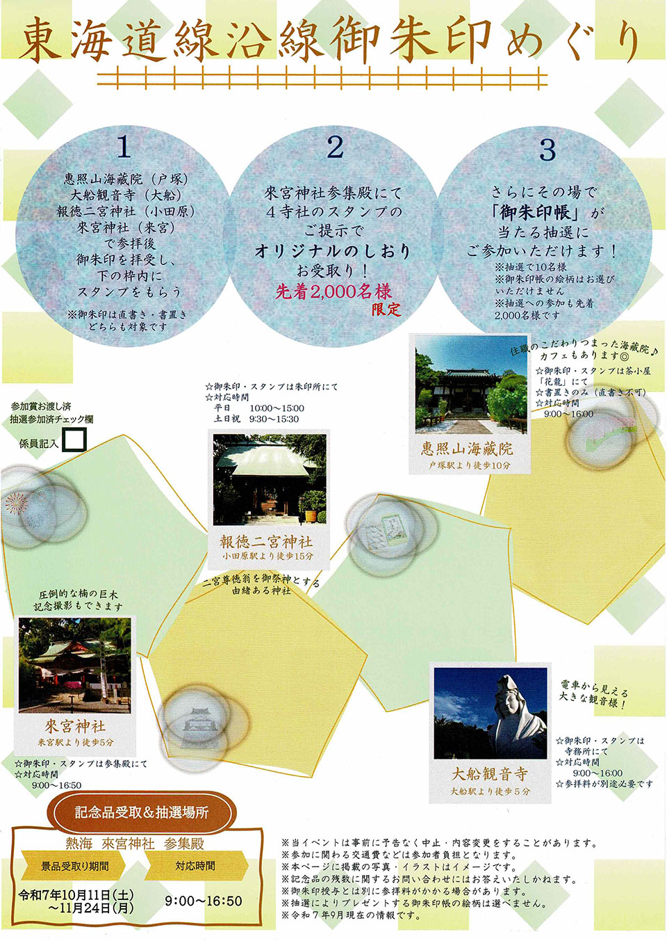 ■会場:海藏院(戸塚駅)・大船観音寺(大船駅)・報徳二宮神社(小田原)・來宮神社(熱海)