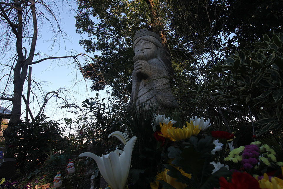海藏院の花観音様。可愛らしい姿で立っています。
