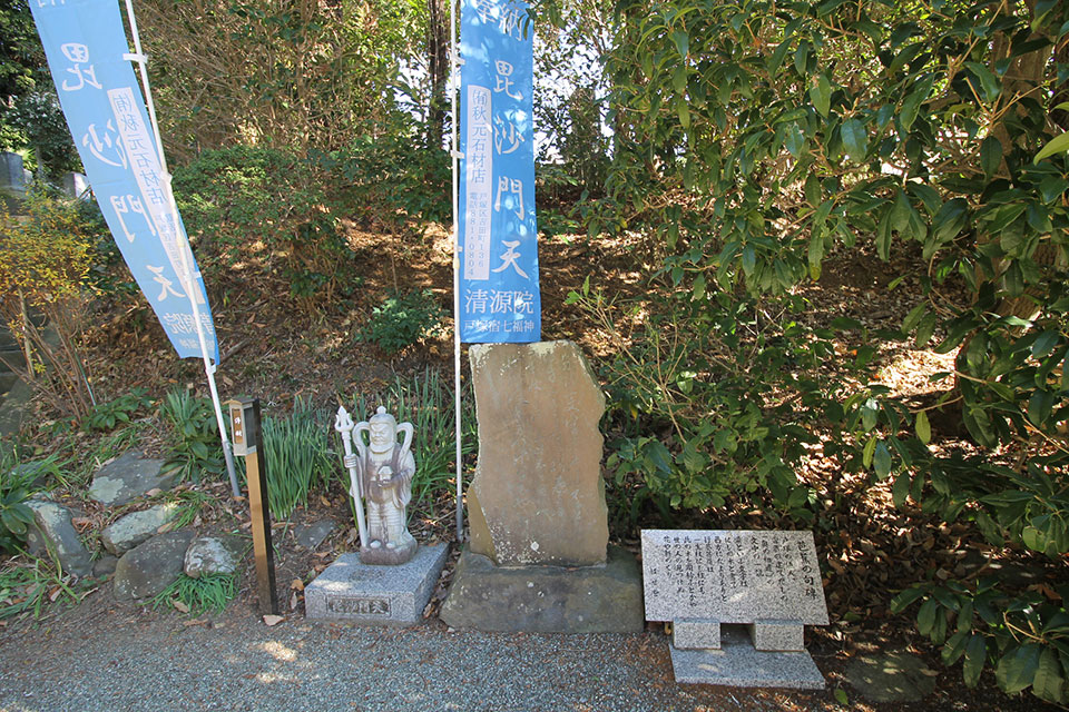 清源院の毘沙門天。歌碑もあります。