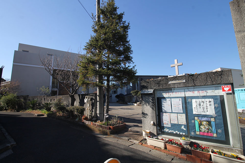 戸塚駅方向に向かう途中に教会があります。