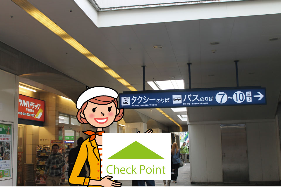 タクシーのりば・バスのりば7〜10番の看板のあたり。