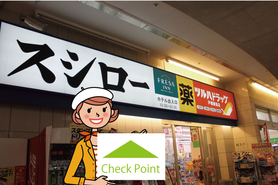 スシロー、フレッサイン、ツルハドラッグの看板があります。