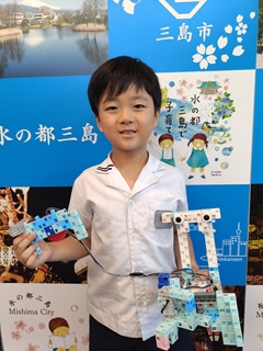 日本予選で3位をとって嬉しかったです。予選のロボットは最初、自動化に挑戦しましたが、むずかしかったので手動にしました。最初の点数は600点くらいでしたが、練習を重ねるにつれて、タイムがはやくなり、点数もあがっていきました。はじめに1000点をとったときのタイムは2分50秒くらいでした。だけど、コースを変えたらタイムが1分以上縮まりました。予選では3位でしたが、世界大会では1位をとりたいです。