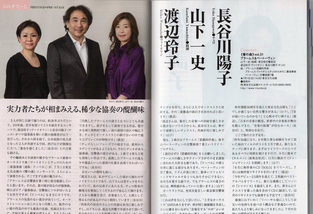 「ぶらあぼ6月号」の40、41頁に、7月1日(日)東京文化会館(大)で行われる≪響の森vol.31 ブラームス&ベートーヴェン≫のインタピューが掲載されました。