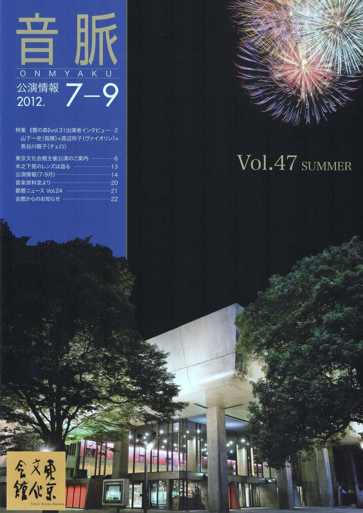 東京文化会館発行の公演情報誌7-9の「音脈」に、7月1日東京文化会館で行われる≪響の森vol.31≫について、見開きで4頁にわたるインタビュー記事が掲載されました。