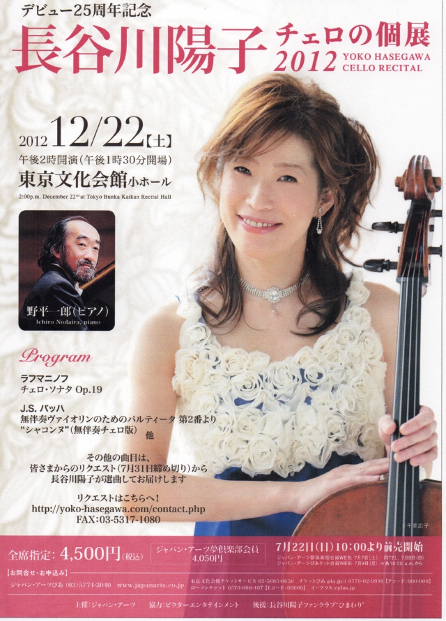 12月22日(土)14時から東京文化会館(小)で行われる【チェロの個展2012】の詳細が発表されました。